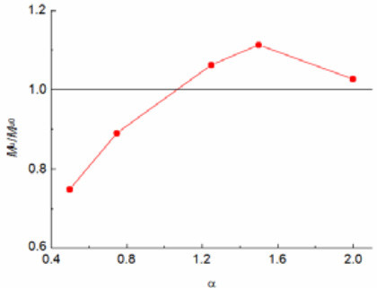Fig .9 The curve of bending moment reduction versus α