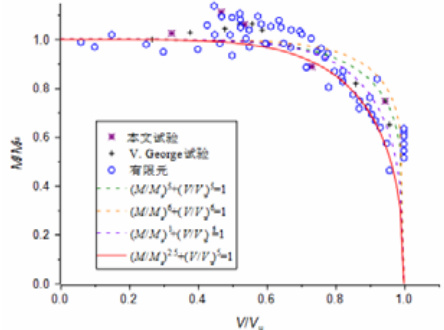 Fig.16 Bearing capacity curves of moment-shear interaction