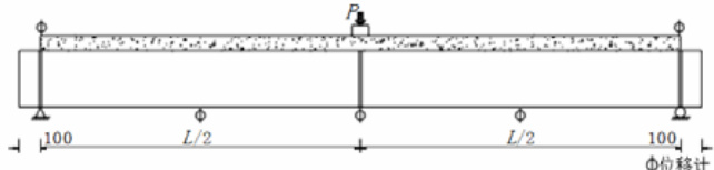 本试验中五片梁采用跨中单点集中加载的方式,如图 4 所示;另一片梁采用两点对称加载以获得纯弯状态下模型梁的极限荷载, 其纯弯段长 1.0m,加载图式如图 5 所示。模型梁采用 1500kN 液压千斤顶施加竖向荷载。试验过程中,选取单调分级加载的方式进行加载,加载初期阶段按照理论计算所得破坏荷载的 5%~10% 加载,在钢梁屈服后改为以跨中位移控制加载,直至试件破坏。