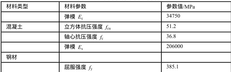 Table 2 Parameters of concrete and ste