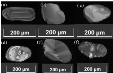 河砂碎屑锆石源于上游岩石风化,经水流搬运沉积于下游。因其高熔点、耐酸性及抗风化性强,能长期保存,记录源区岩石的结晶年龄与地球化学特征,外形多为自形或半自形,表面振荡环带可反映形成环境[5]。