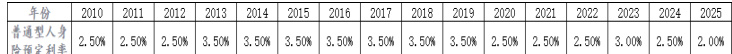 表 1:2010-2025 年普通型人身险预定利率变动过程