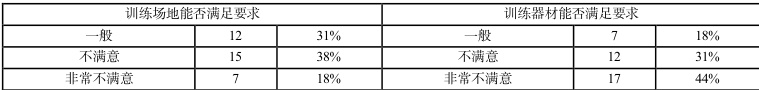 从表 9 中可以看出,对于训练场地基本能满足或者一般占 44%,对于训练器材基本能满足或者一般占 25%。本人通过跟教练员深度的访谈交流也发现他们觉得现在的训练场地、训练器材都未达到队伍基本训练的要求。尤其是校园足球队伍的学校场地。还有训练器材严重缺少。导致训练内容单一、有些训练做不了的现象。