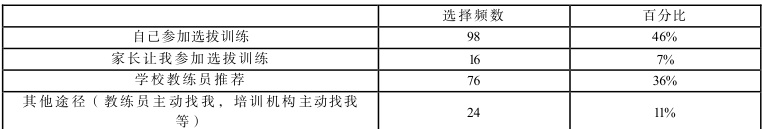 表 3 优秀足球运动员参加选拔的调查表(N=214)