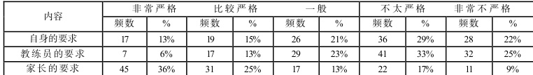 4.1.1 管理机构对运动员和教练员的要求较低,专业的教练员数量比较少。而且教练员继续培训要求比较少,培养机构的场地条件不够好,训练器材种类较少、满足率较低。而且选材渠道少,可选的人才数量少。