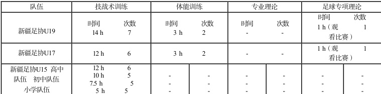 表 5 新疆优秀足球运动员所在的队伍训练和专业课程安排(一周时间)