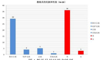 从图 1 中可以看出,被调查的教练员中大部分是少数民族教练员,而且以男性为主。主要原因是由于新疆地处于中国西部,并且是一个少数民族居住的地域,因此有更多的少数民族运动员和教练员。他们交流使用本民族语言进行教练员。这时候语言成为了“双刃剑”。本民族语言可以队员和教练员之前可以无障碍的交流,但是队员将来去别的俱乐部进行训练和比赛时候出现交流上的问题。