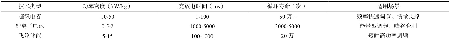 表 1 储能技术调频性能对比