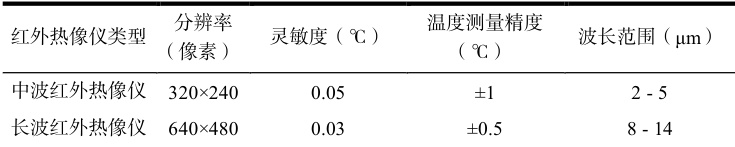 表 1 不同类型红外热像仪的主要性能指标对比