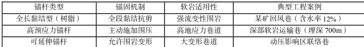 表1 软岩巷道锚杆类型对比