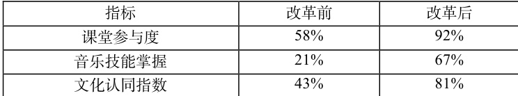 1.教学形式单一: 83% 的音乐课为跟唱教学,学生乐器接触率低于 5% 。