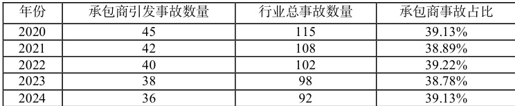 表 1:近五年油气储运行业承包商引发事故占比情况