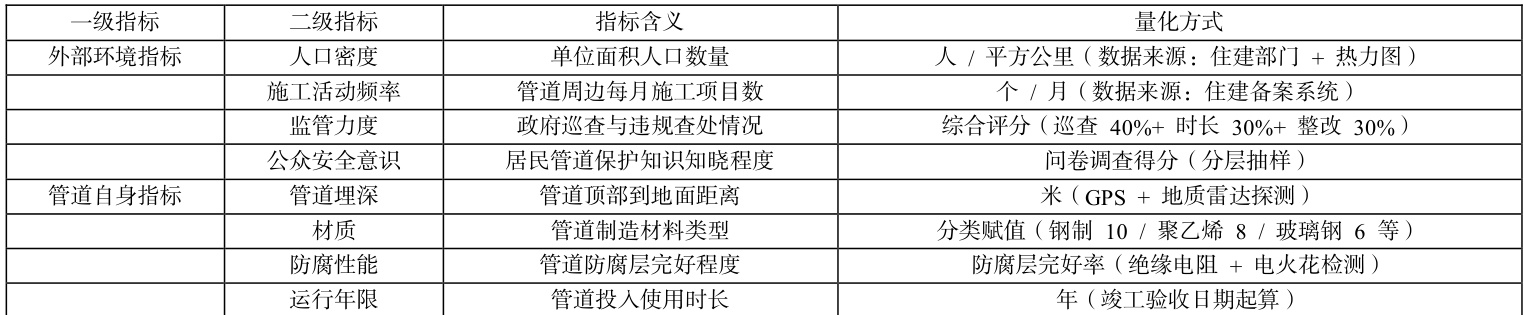 表 1:输气管道第三方破坏风险评估指标体系