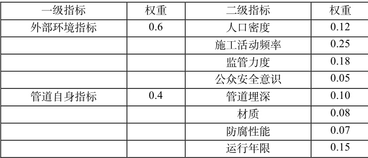 表 2:输气管道第三方破坏风险评估指标权重
