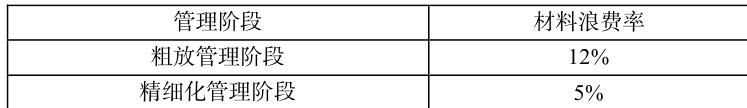 在物料的存储环节中,对仓库的布局进行了合理的规划,并做好防潮和防火的保护措施,降低了物料的损耗。利用智能化仓储管理系统实现了物料入库,出库及库存数量的实时监测,扫描二维码可获得物料基本信息,存放地点及用途。材料使用环节采用限额领料制度并按施工进度及预算严格控制材料发放量。比如按建筑图纸准确地算出每层需要多少块砖,施工班组就只能按预定计划拿到相应的砖,超过部分则需要说明理由和批准后才能领用。经过精细化管理,材料浪费情况得到有效改善(见表 1)。