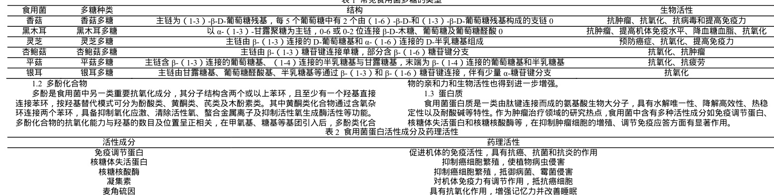 食用菌富含多糖、多酚、蛋白质等多种抗氧化活性成分,这些成分通过清除自由基、螯合金属离子、抑制氧化酶等多重机制发挥抗氧化作用,在调节免疫、预防糖尿病、预防肿瘤等方面展现出显著功效。其中,食用菌多糖在医药保健、食品工业及化妆品领域已开展深入研究与应用。目前,针对食用菌多糖的提取已形成了较为系统的方法,如热水浸提法、超声辅助提取法、超临界流体萃取法等,不同的提取方法在提取率、提取质量、能源消耗等方面各有优劣,未来应进一步深入研究食用菌多糖的高效提取技术,同时加强食用菌在各领域的应用开发,为人类健康事业进步提供助力。