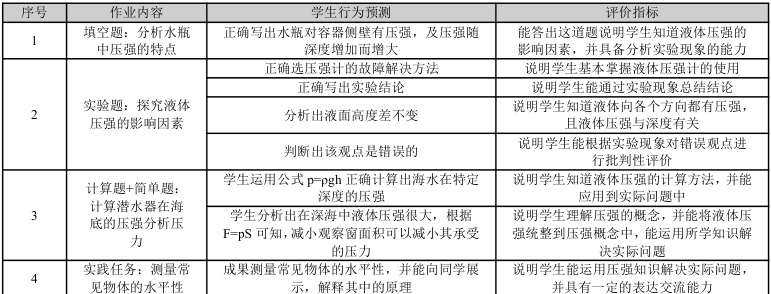 根据本单元的整体安排,学生的学习从感性认识到理性认识,最后应用所学知识解决问题。在学习液体压强之前,学生已经积累了关于压强的比较多的感性认识,所以在这一节更多的是突出理性认识。在具体作业的设计时,要注意作业的情境和问题的真实性。