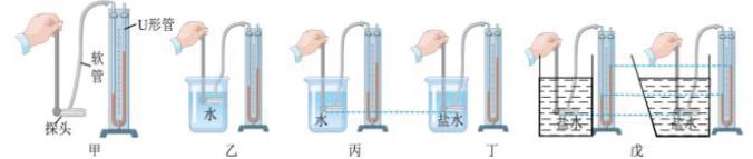 面高度差 (选填“变大”“变小”或“不变”);(4)小芳认为,液体的压强与容器形状有关。小明进行了两次实验,实验现象如图戊所示。由此可知,小芳的观点是(选填“正确”或“错误”)的。