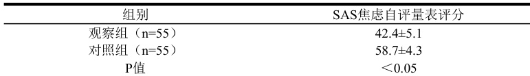 为较为直观地明确不同护理模式下患者的情绪与精神状态变化,本次研究过程中以焦虑自评量表(SAS量表)的评分结果作为主要参考指标,其中,量表评分在 50 分以下为正常,50-60 分属于轻度焦虑,60-70 分属于中度焦虑,70-80 分属于重度焦虑。对两组患者反馈情况进行识别比对过后能够发现,相较于对照组患者而言,采用个性化心理护理模式进行干预的观察组患者情绪状态评分具有显著优势, P<0.05 ,具体数据见表 1 所示。