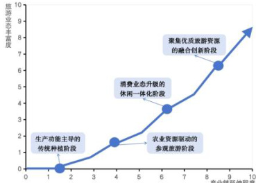 基于上述富平柿子产业的发展现状及 休闲观光农业发展趋势,本研究引入休闲观光农业发展的四阶段模型,作为系统分析其全产业链演进路 长发展过程划分为四个阶段:生产功能主导的传统种植阶段、农业资源驱动的参 消费业态升级的休闲一体化阶段以及聚集优质旅游资源的融合创新阶段。