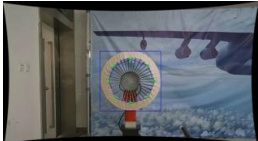 为了验证本文提出的算法,在实验室构建的空中加油测试系统下对加油锥套关键点智能检测和相对位置测量进行算法验证。算法在将图像进行加油锥套识别和关键点检测前,先对图像进行畸变校正处理,以保证采用模型识别输出关键点像素坐标无畸变,然后再通过 EPnP 算法计算相机与锥套的相对位置,以提高测量精度。在试验室环境下,进行加油锥套关键点识别,结果如图 3 所示。