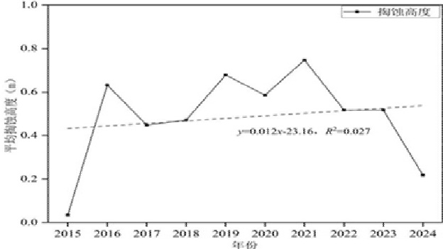 掏蚀深度的量化关系。基于其建立的各要素与掏蚀深度的关联公式,推算得出2015-2024 年盐池长城土遗址掏蚀深度数据、掏蚀高度数据(大
