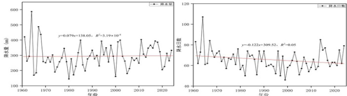 图4 1961-2024 年年平均降水量和降水日数变化趋势