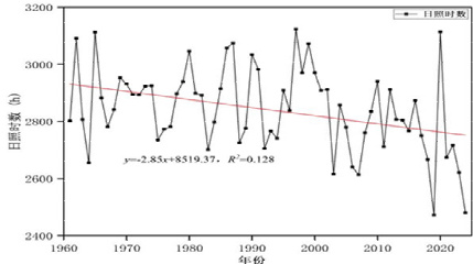1961-2024 年期间,盐池地区气象要素呈现显著变化特征:气温与降水量均以每 10 年为单位呈上升趋势,且降水变化伴随干旱化倾向(基于历史均值对比分析);日照时数与大风日数则呈现反向变化,均以每 10 年为周期持续下降。从气象要素对长城土遗址掏蚀病害的作用来看,上述趋势整体形成了相对有利的保护环境。