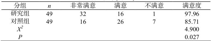 研究组满意的显著高于对照组( P<0.05 )。见表 2。