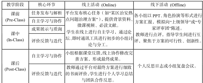 本研究以《公安管理学》中的一个典型教学单元——“大型活动安全保卫管理”为例,分析任务驱动混合教学模式如何落地生根,将抽象的理论知识转化为学生驾驭复杂警务情境的“实战兵法”。我们设计的核心任务是:“请以小组为单位,为即将在我市举办的‘未来之声’大型跨年演唱会设计一份全面的安全保卫工作方案。”这个任务具备了理想的教学特性:首先,它高度情境化,与公安工作的现实紧密相连;其次,它足够复杂,涵盖风险评估、警力部署、交通疏导、应急预案、舆情监控等模块,能够有效激活课程的全部知识点。