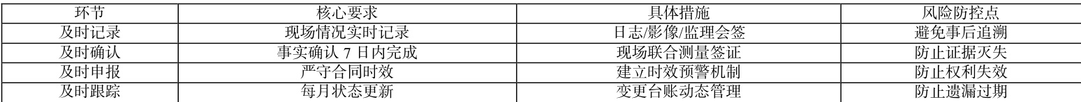 项目实施阶段是变更索赔的黄金窗口期,此阶段管理成效直接决定索赔结果。建立高效的过程控制机制需把握以下关键环节: