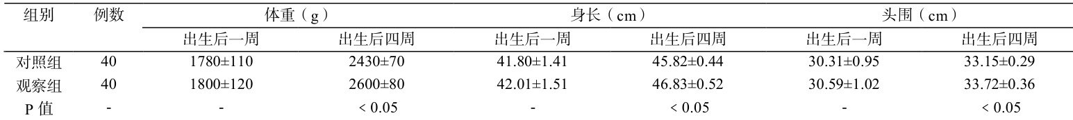 观察组生长发育指标评分高于对照组,差异有统计学意义( P<0.05 ),