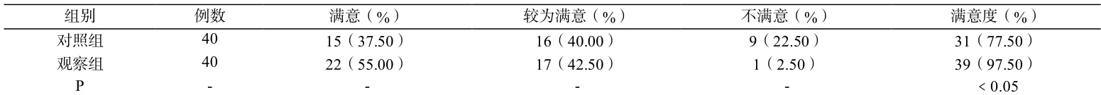 观察组家长满意度高于对照组,差异有统计学意义( P<0.05 ),详细