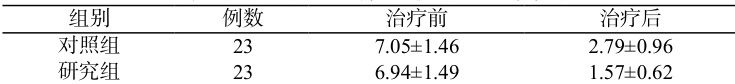 治疗后,研究组的VAS评分低于对照组( P<0.05 ),见表1。