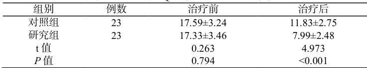 研究组治疗后的PSQI评分低于对照组( P<0.05 ),见表 3。