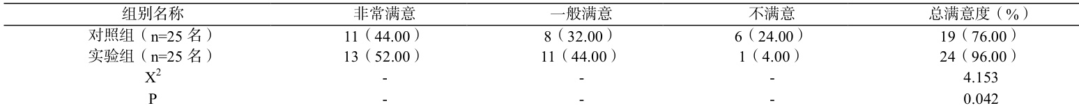 脑外科实习生满意度比较,实验组更高, P<0.05 。详见表 2.