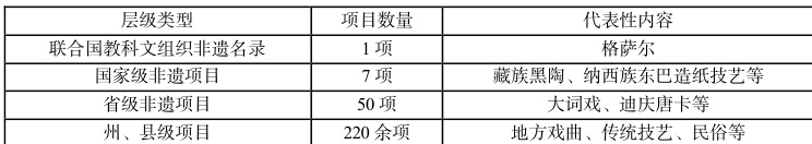 表 1:云南省迪庆州非物质文化遗产资源概况(截至 2024 年)