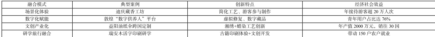 2018 年我国成立文化和旅游部,标志着“诗与远方”进入制度性融合新阶段。此后,《文化和旅游规划管理办法》和《“十四五”非物质文化遗产保护规划》的相继出台,使融合模式开始向纵深发展。如:云南迪庆着力推动非遗传统业态转型升级,促进文旅深度融合,在不断优化既有“非遗+旅游”成果的同时,积极解决区域内部分非遗旅游资源开发不均衡的难题,将原先一些非热门的旅游乡村纳入到“非遗+旅游”的辐射范围,从而带动周边村镇的经济发展。目前,已成功建成了塔城的启别村、佛山的说达村等一批特色乡村旅游品牌。非物质文化遗产促文旅深度融合发展,实现文化价值与经济效益双赢。2020 年至 2021 年,旅游业受到新冠疫情影响,但 2022 年已恢复至疫情前水平。2024年上半年,累计接待国内游客 1608.07 万人次,同比 2023 年同期增长 27.46% ,累计实现国内旅游花费 197.85 亿元,同比 2023 年增长 38.1% 。