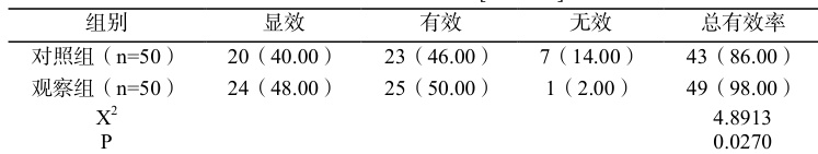 表 1 两组临床疗效比较[n (% )]
