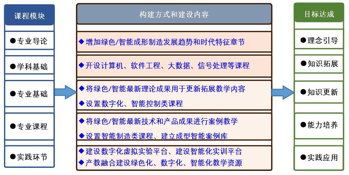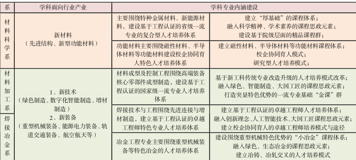 在此基础上,各专业可根据自身特色,在统一课程目标的框架下,适当增加体现专业侧重的补充目标,但补充目标不能与核心目标冲突,且需服务于各专业的培养目标。例如材料成型及控制工程专业增加课程目标3:掌握材料的结构、相图、凝固、相变等基本原理以及材料成分设计、制备/加工等环节对性能的影响规律,能通过控制材料的化学成分和生产工艺提高材料的性能,改进和发展各种热加工工艺,并且合理地选材。