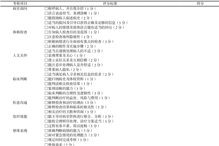 表1 迷你临床演练(mini-CEX)评分表