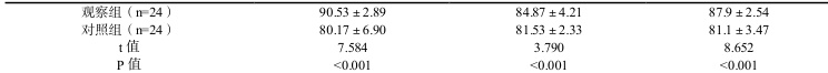 采用SPSS26.0 软件分析数据,各项观察指标均经过正态性检验,符合正态分布以均值±标准差表示,两组间比较采用t 检验,以P<0.05表示差异有统计学意义。
