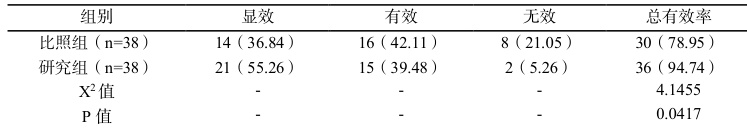 同比照组相比,研究组总有效率高, P<0.05 。见表 1。