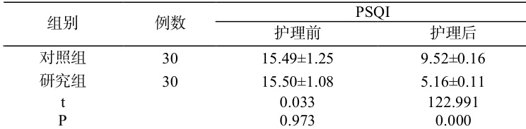 使用匹兹堡睡眠指数(PSQI)进行护理前后的睡眠质量评估,总分 21分。