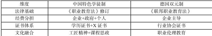 2.中国特色学徒制:区别于德国"双元制"、英国"现代学徒制",我国学徒制的特色内涵体现为"三位一体"架构: