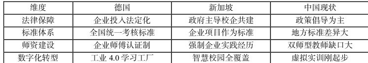 (1)德国"双元制"的标准化体系(2)新加坡"教学工厂"模式(3)日本"职业能力开发"体系