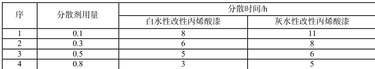 表 2 为分散剂用量对不同色漆分散效率的影响