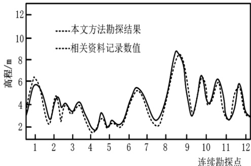 根据表 2 数据,三维数据场可视化技术能够较好地识别和提取出与数据库记录相符的地层特性参数。通过对多个勘探点的光滑表面进行拟合,得到不同深度的深度,并以此为基础,对该海域的水深变化进行模拟。实验结果如图 2 所示。