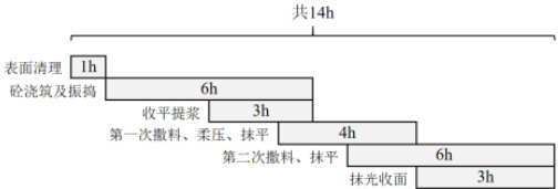 图3 金刚砂耐磨地坪施工穿插流程及总时间
