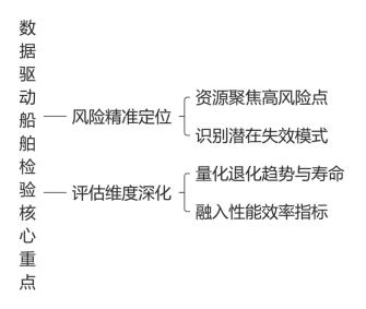 随着航运业的快速发展,船舶对安全和可靠的要求越来越高,而作为保证其正常运转的重要一环的船舶检测方式也受到了很大的挑战。数据驱动模式深刻重塑了船舶检验重心。这一转变将检验核心价值从周期性局部检测与经验判断,显著转向对全局风险的前瞻把握与量化评估,其内涵聚焦两大关键领域。
